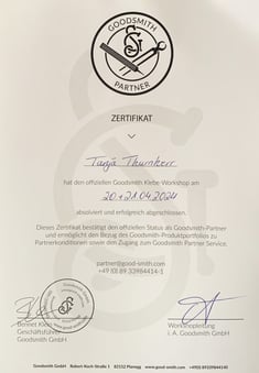 Zertifikat Goodsmith Klebe-Workshop